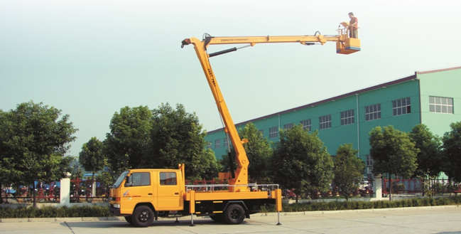 该车是一种由汽车底盘、液压折臂及旋转支撑等组成的一种具有上下升降和旋转功能的高空作业车辆。车辆主要适用于园林部门修剪树枝、起吊树木;市政、物业等部门抢修、电力作业;城管部门悬挂广告牌、标语;路政等部门检修和安装路灯、路牌;工矿、电信、物业企业等单位抢修设备、电力作业等。